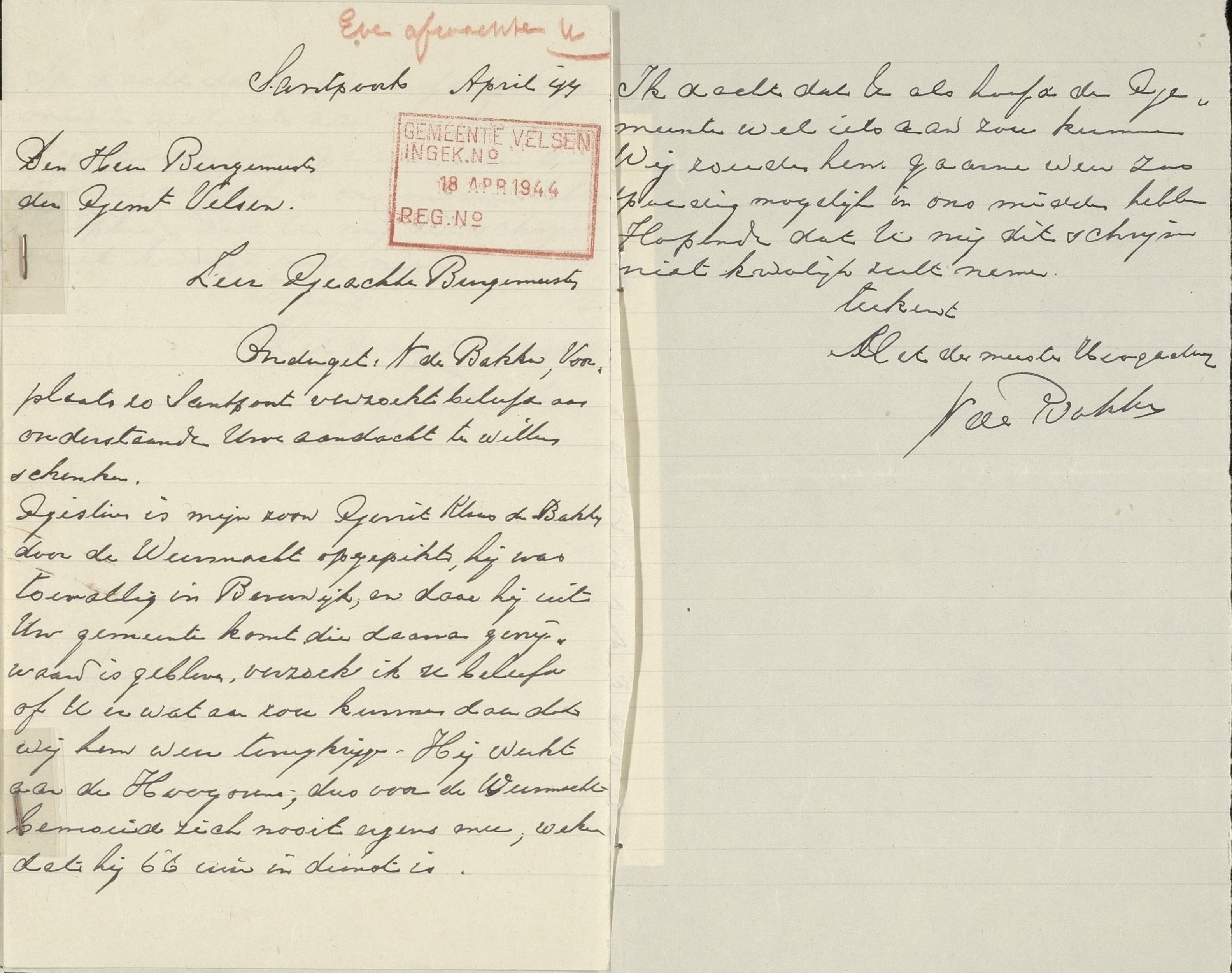 | Gerrit Klaas de Bakker is vrijgelaten: Woensdag 3 Mei 1944 | |